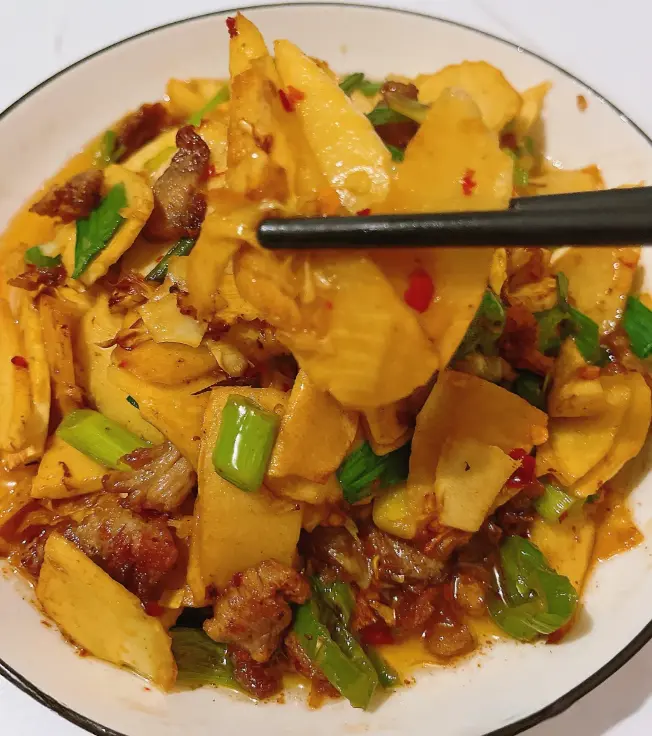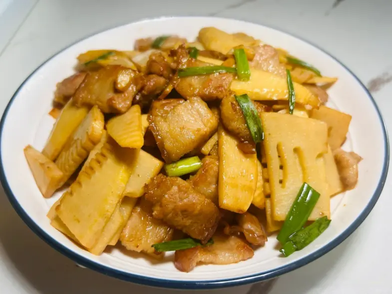 冬笋的脆爽与肉片的滑嫩相互映衬,青红椒的加入让这道菜色彩更加诱人,口感层次丰富。冬笋富含膳食纤维和微量元素,猪肉则提供了丰富的蛋白质,这道菜既美味又健康,非常适合冬季食用。